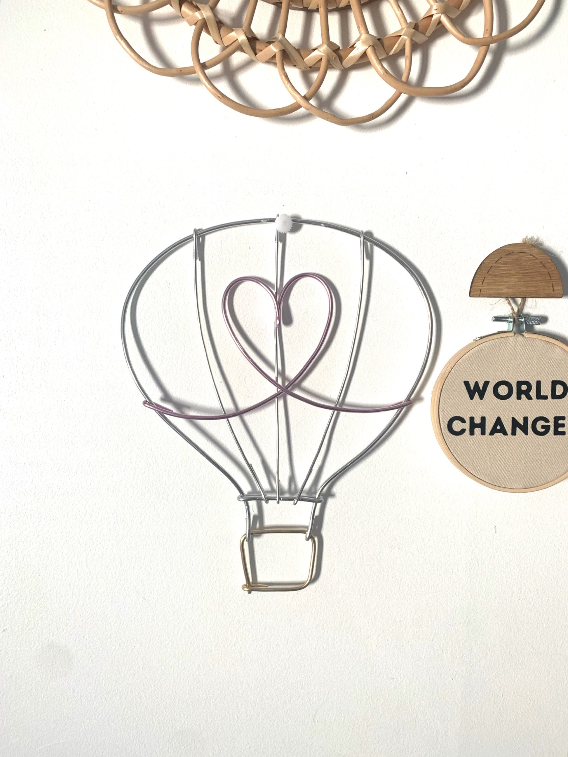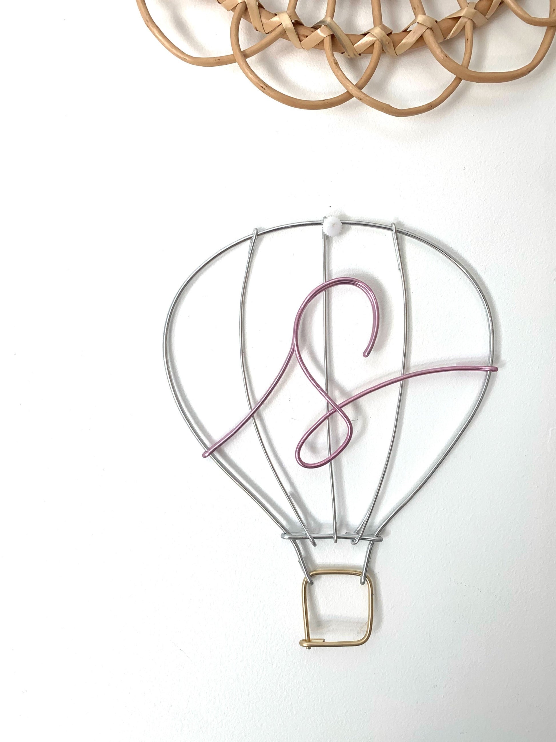 Add a personal touch to your decor with our handcrafted wire art hot air balloon featuring your chosen initial or opt for a heart instead. Perfect as a unique gift or a charming nursery decoration, this custom wire art blends minimalist design with whimsical flair.